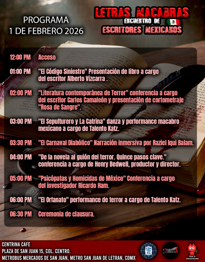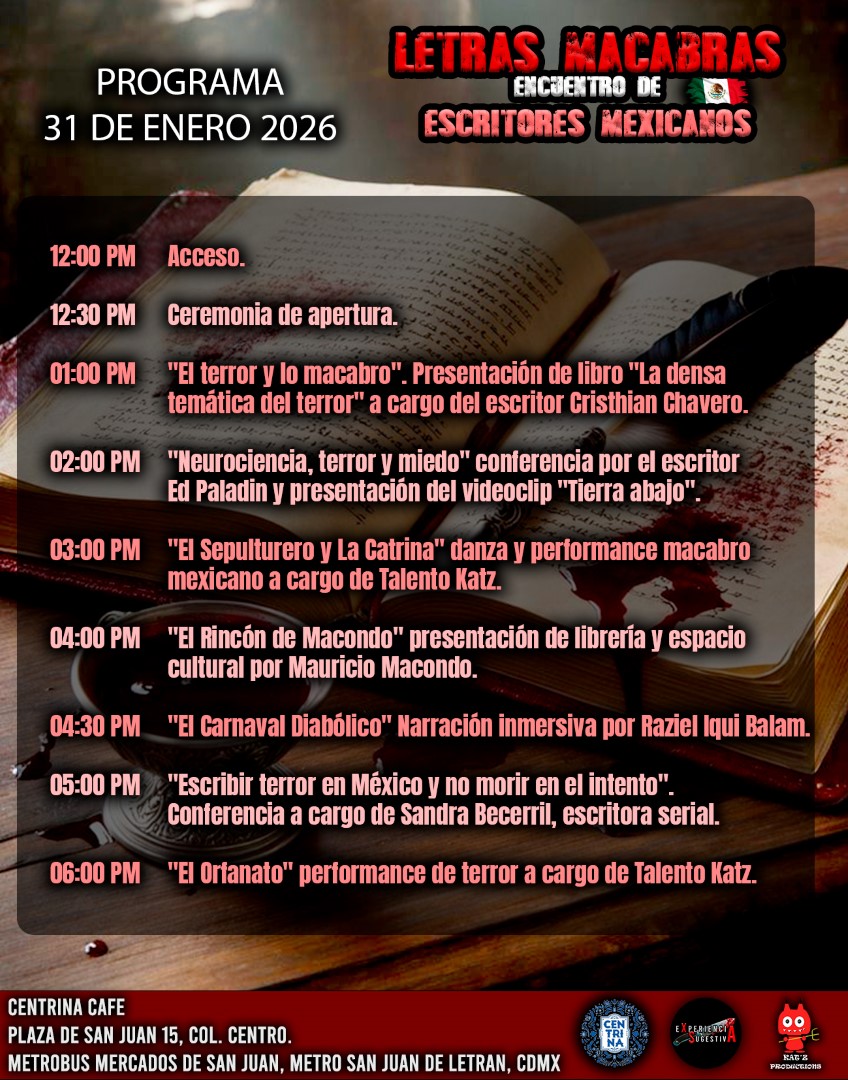 Katz Productions presenta un evento literario, artístico y cultural con escritores y autores de terror, conferencias, charlas, presentaciones de libros, expositores, cineastas, productores e investigadores.